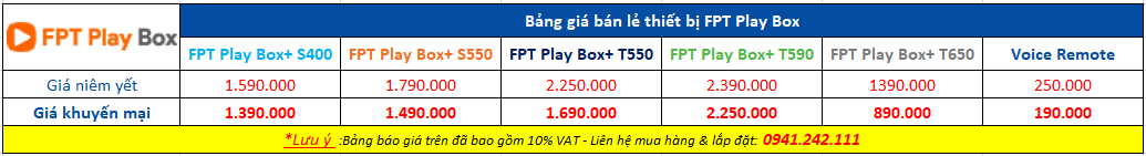 Bảng giá thiết bị FPT Play Box