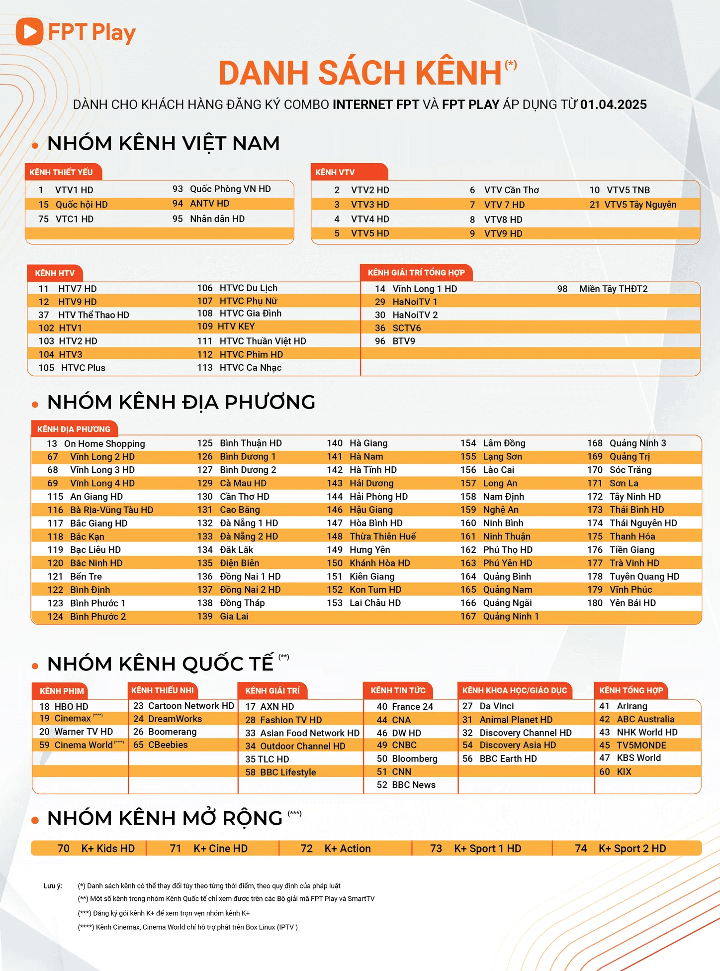 • Gói kênh đa dạng với hơn 200 kênh truyền hình đặc sắc trong nước và quốc tế như: HBO, BBC, CNN, Cinemax, Cartoon network, Disney, Discovery…